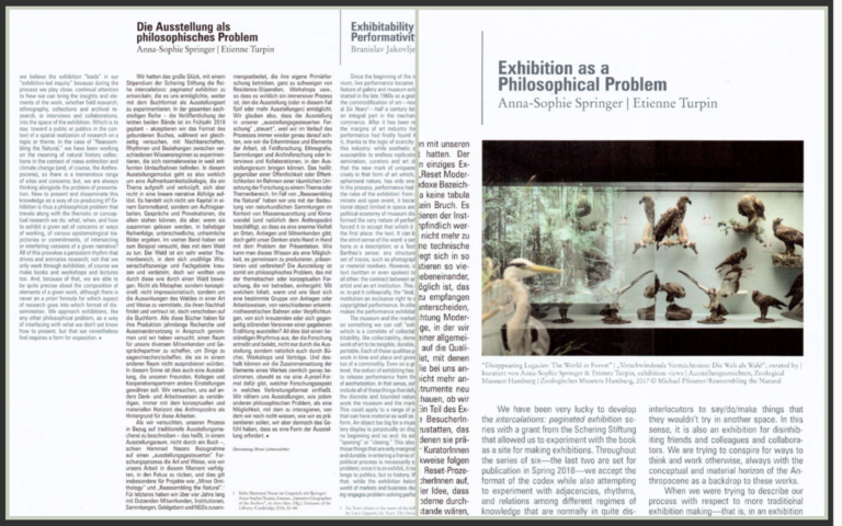 as part of the curatorial lab "Theater, Garden, Bestiary: A Materialist History of Exhibitions" organized by Vincent Normand & Tristan Garcia