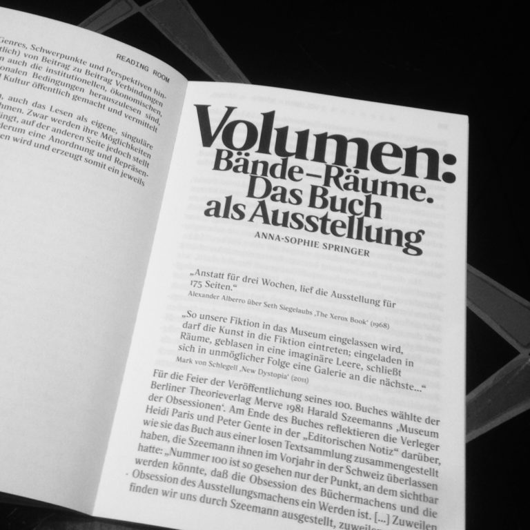 Springer – I am interested in the relationship between books and exhibitions, and particularly where the book becomes a site in which artistic, editorial, and curatorial practice coalesce. In which ways do the book and gallery, as platforms, grant you distinctive spaces for presenting your work?