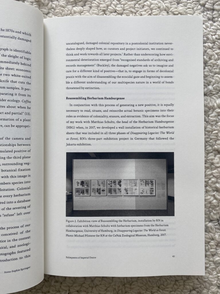 My essay “Palimpsests of Imperial Desire” has just been published in the peer-reviewed volume “Dark Botany: The Herbarium Tales,” edited by Sigi Jöttkandt, Prudence Gibson et al. (Open Humanities Press, 2024). The text draws from my PhD research and critically revisits my work with herbarium and agrobotany collections at the Indonesian Institute of Science and the Herbarium Hamburgense, developed through “Reassembling the Natural.”